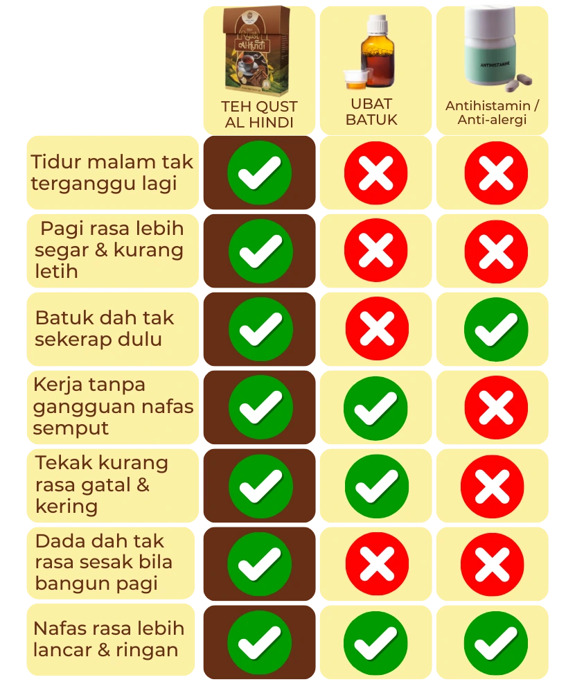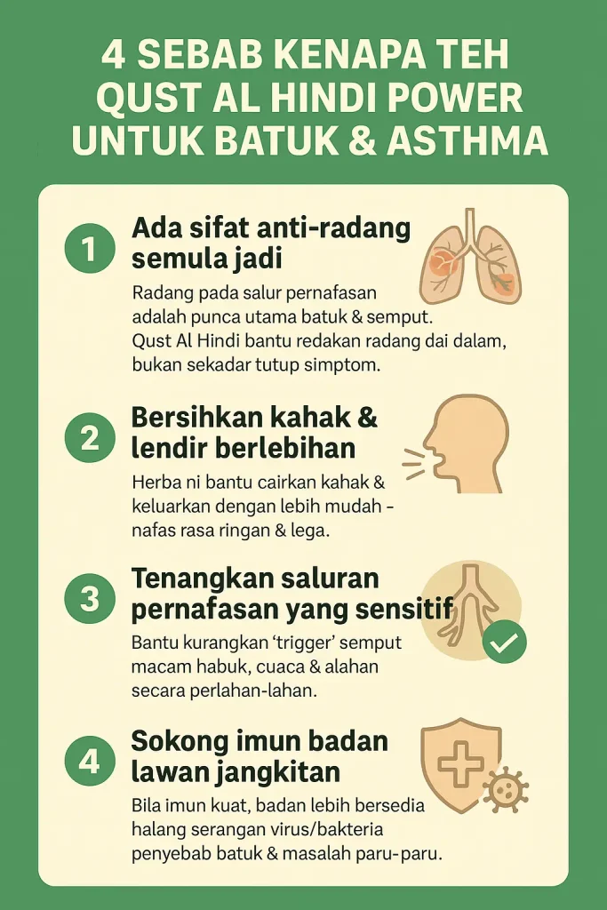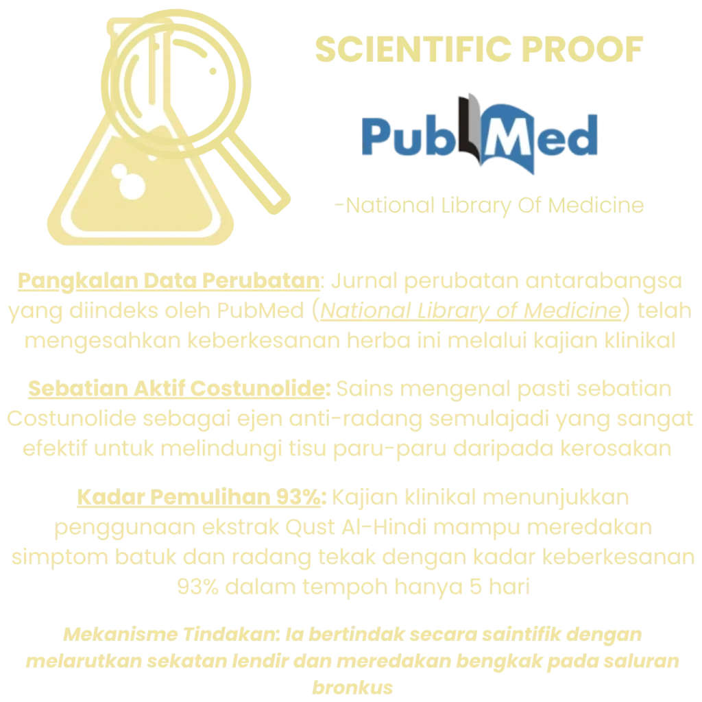 FORMULASI TERBARU EKSTRAK QUST AL HIND UNTUK KETAT DADA BATUK CEPAT LETIH NAFAS SEMPIT KAHAK PEKAT