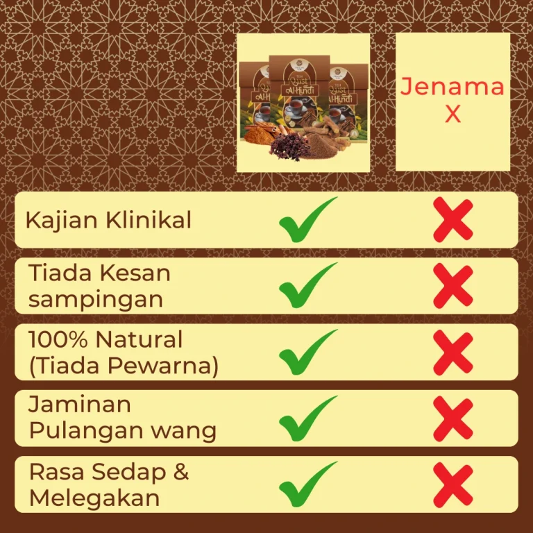 Perubahan Selepas Amal Teh Qust Al Hindi vs produk/Jenis Lain
