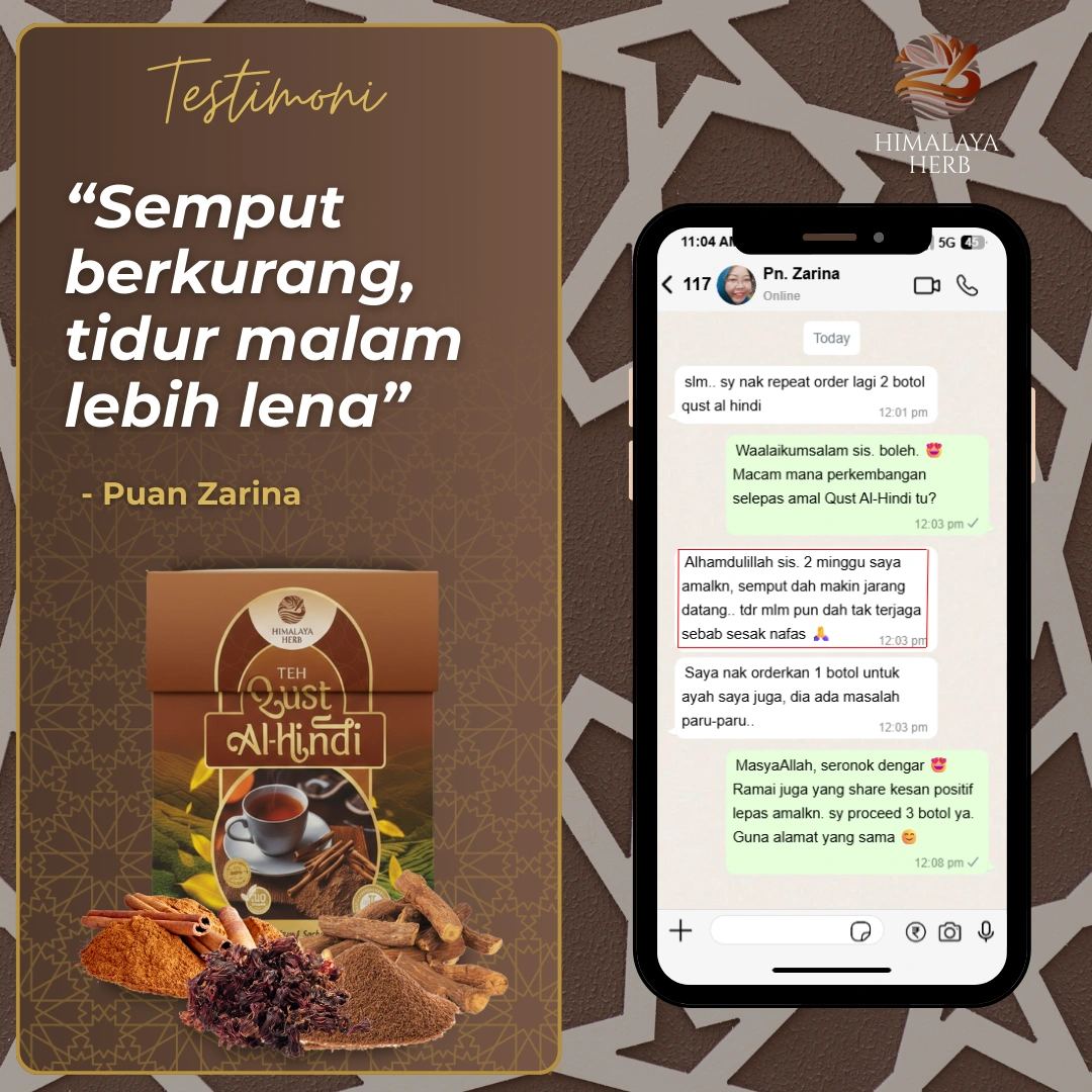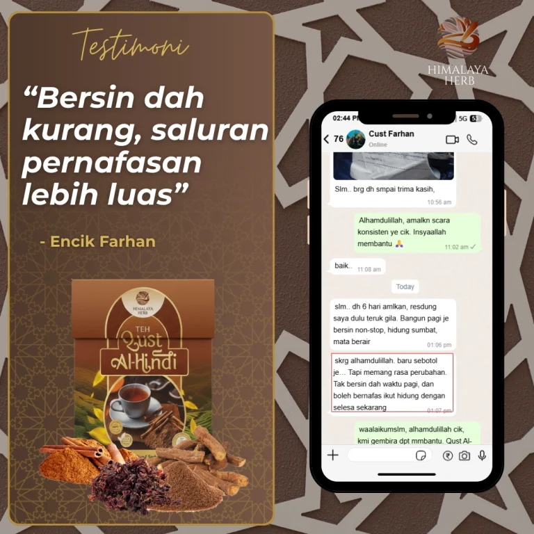 Testimoni Pengguna Teh Qust Al Hindi